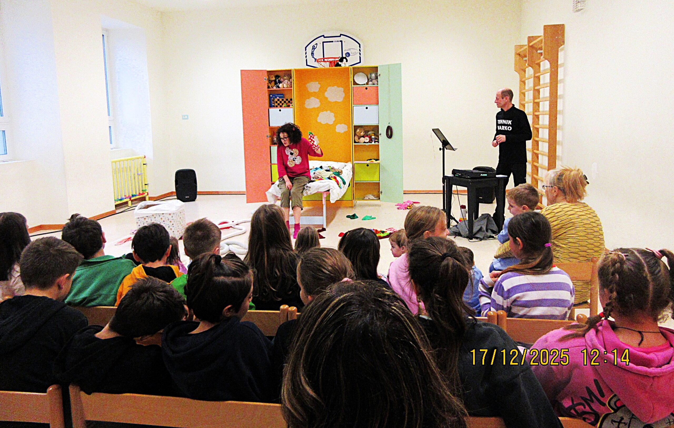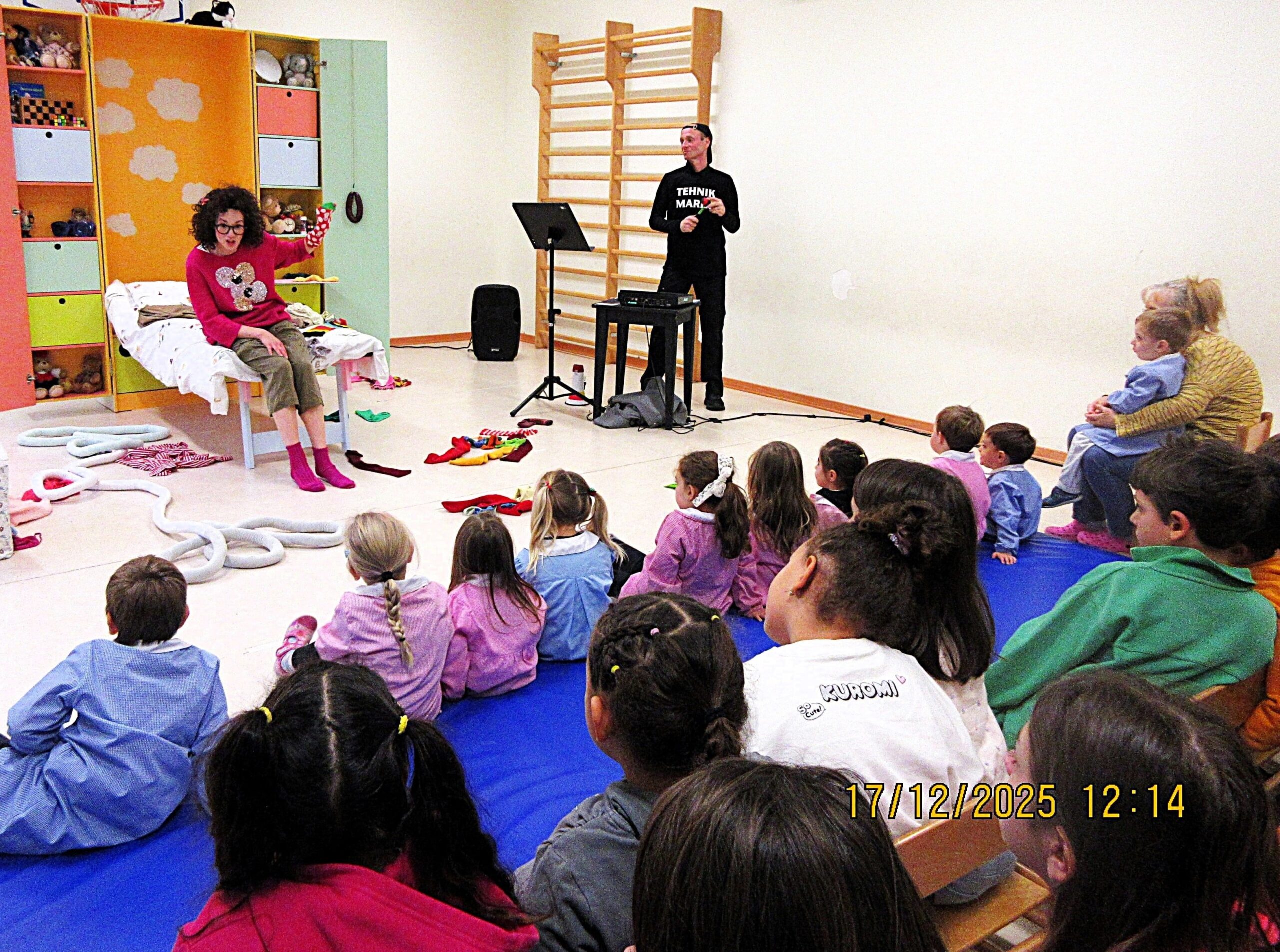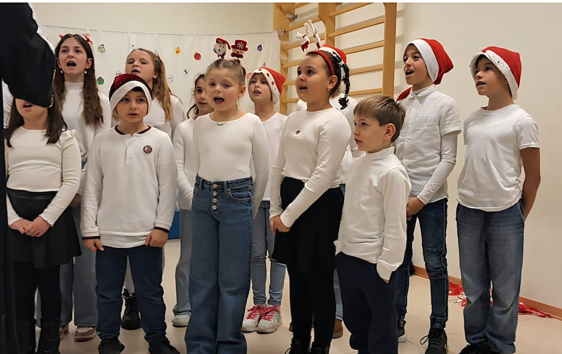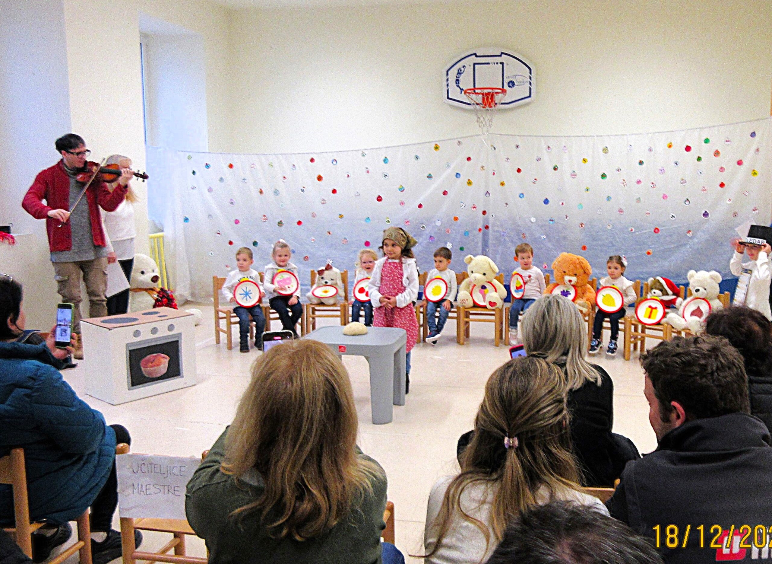 * Otroci iz vrtca so imeli božičnico z naslovom Dobrodošlo, Novo leto, pri kateri je sodeloval tudi vijolinist Felipe Kopušar, ki letos vodi glasbeno delavnico. Učenci osnovne šole pa so s plesom, petjem in recitiranjem z veseljem popestrili vzdušje.